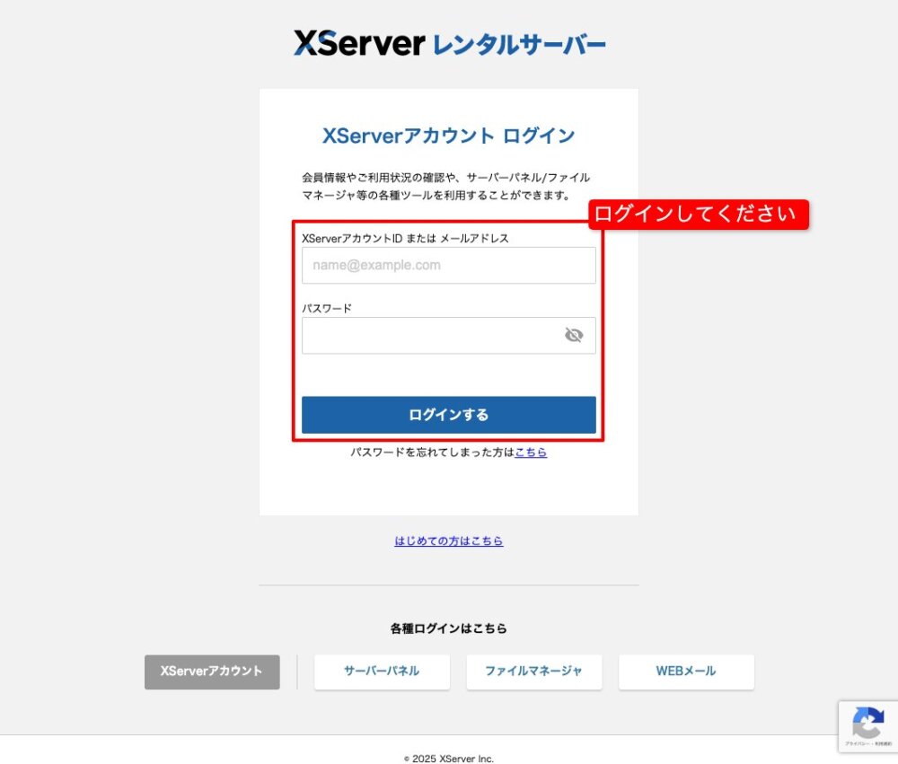 手順1:エックスサーバーにログインしてください。