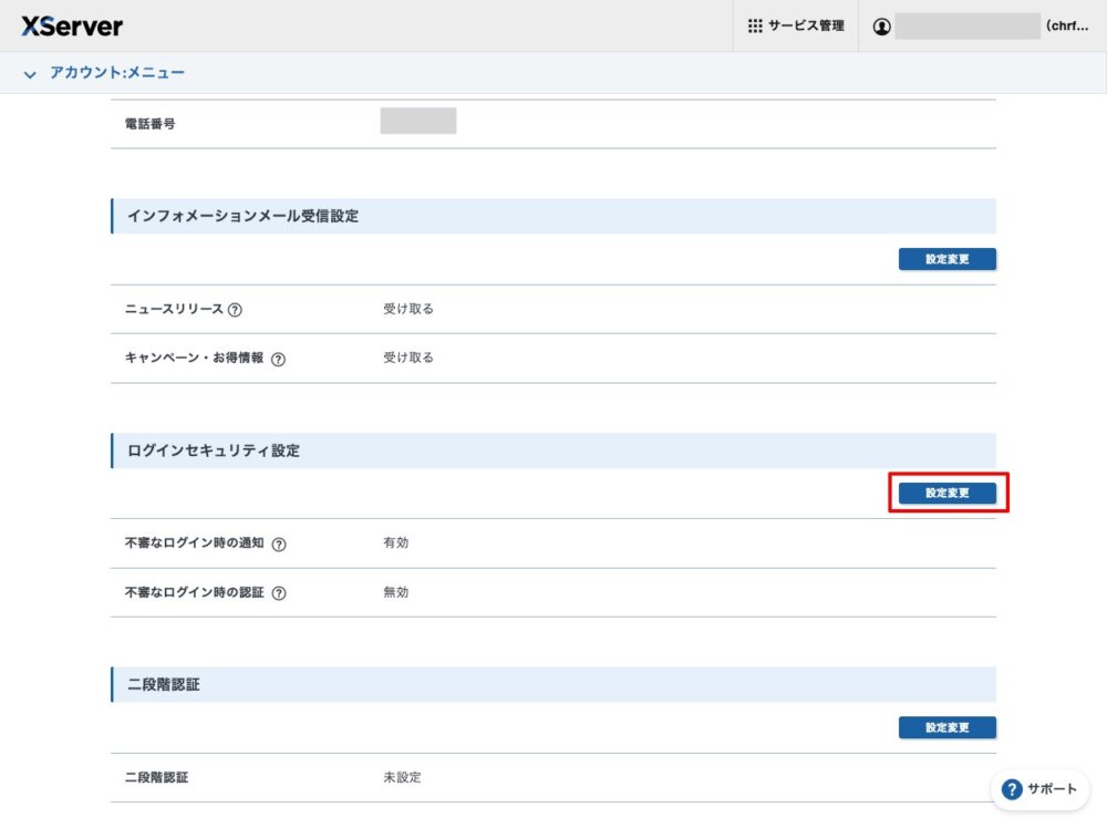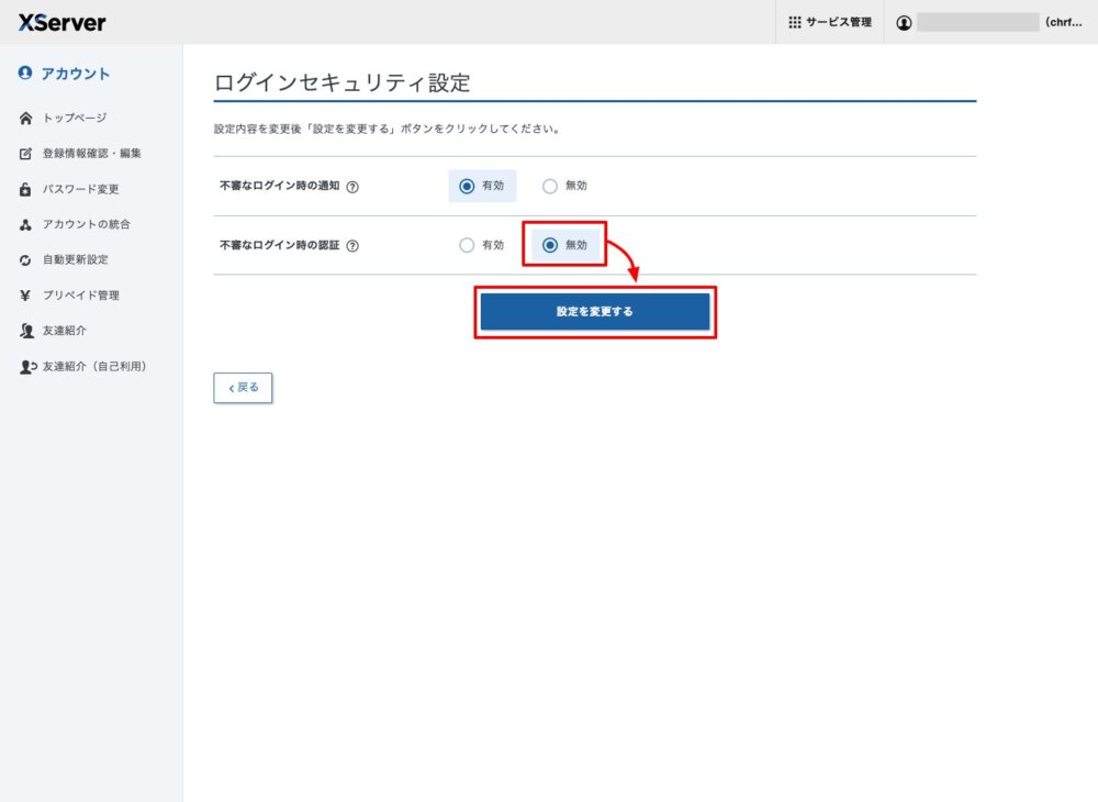 エックスサーバーのログインセキュリティの一時的な無効化のお願い