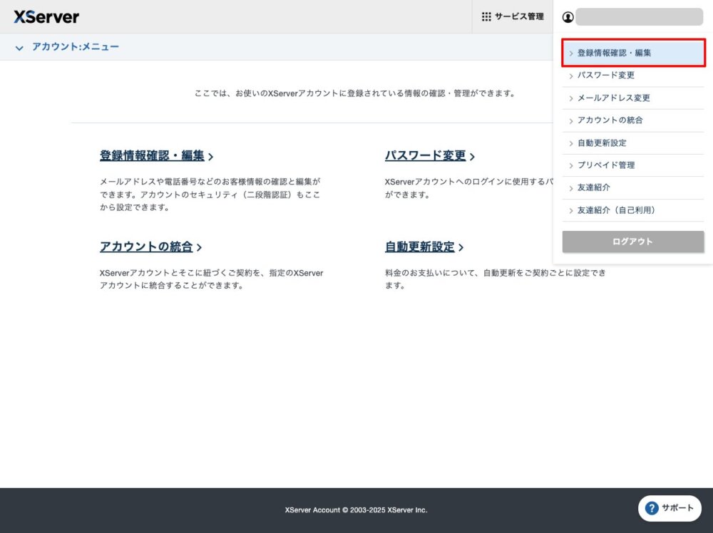手順2:エックスサーバーの「登録情報確認・編集」をクリックしてください。