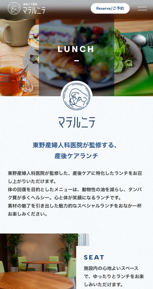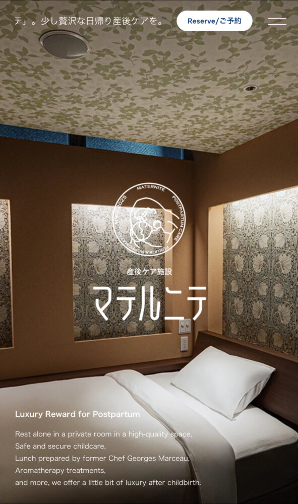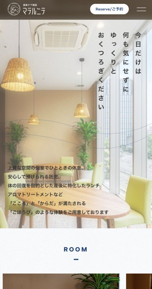 福岡市中央区六本松に新しくオープンした産後ケア施設「マテルニテ」様の公式ホームページの制作実績です。