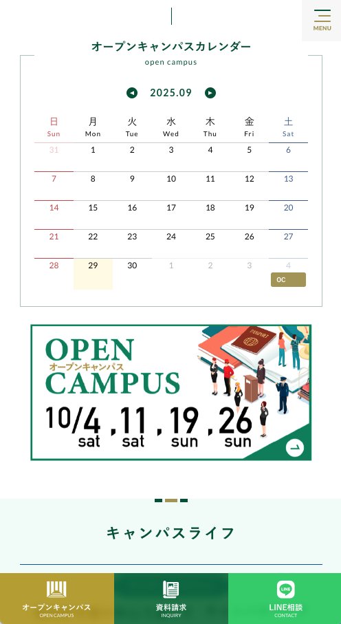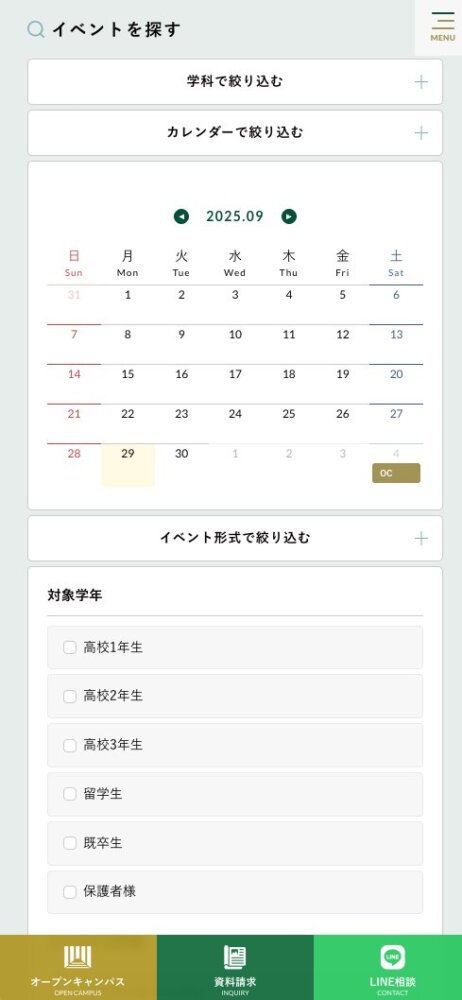 最終的にアクションを起こしてもらうオープンキャンパスページは、管理画面からのバナー管理や、カレンダーを含む複数条件での検索機能など、機能面で高度な実装を行っています。