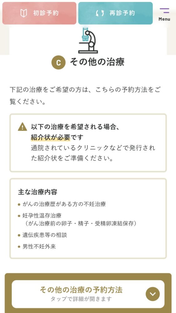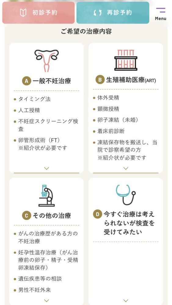 まず、初めて診察を受ける方の予約方法が治療内容によって異なりかなり複雑だったため、できるだけわかりやすく伝えられるようコンテンツの見直しを行いました。