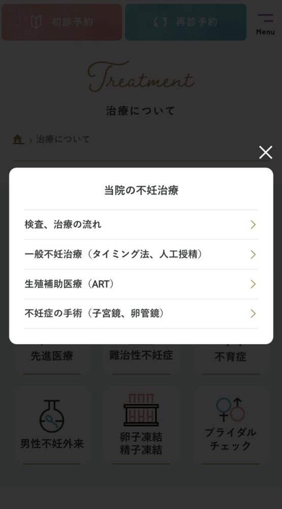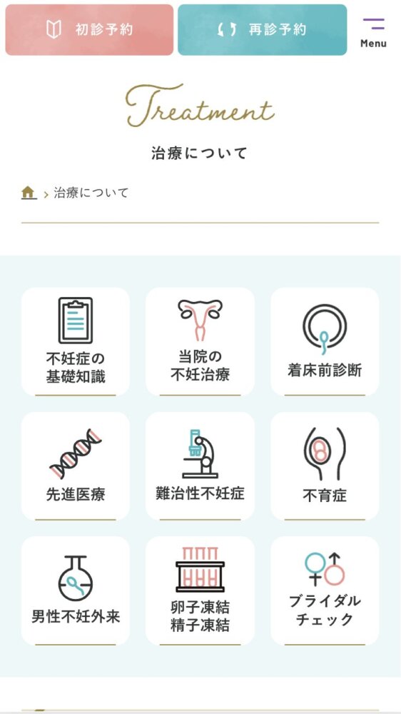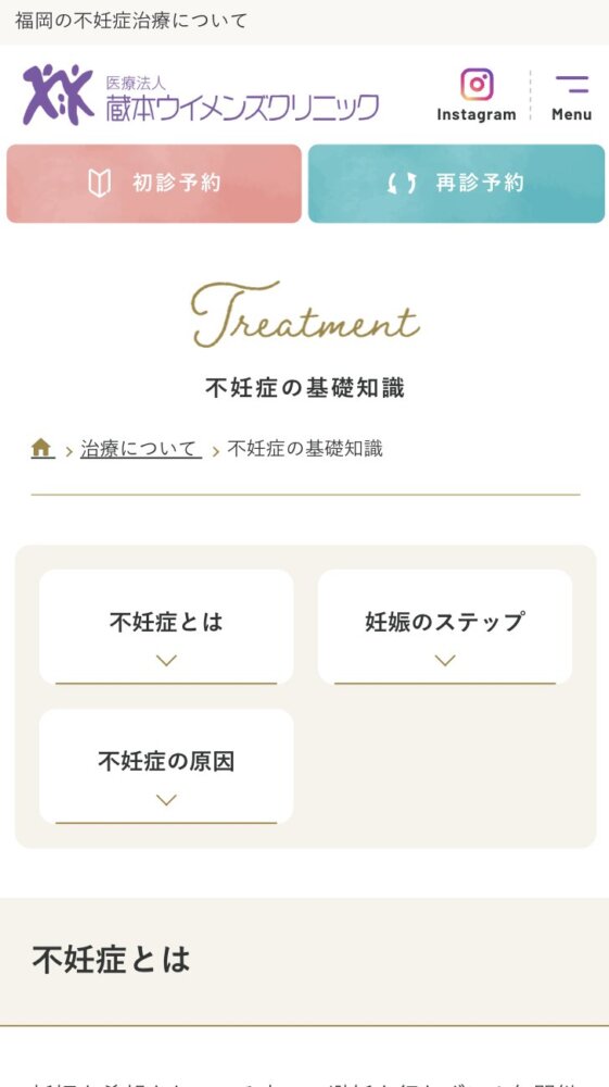 また、SEO対策用のページとしての役割も持つ各治療の解説ページは、構成を見直し、様々な不妊治療について探されている方に適切に情報提供できるコンテンツ展開をしています。
