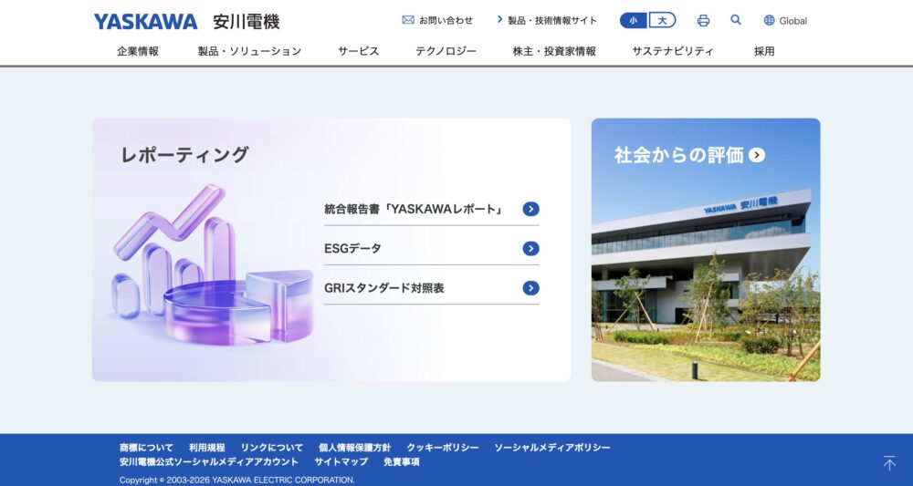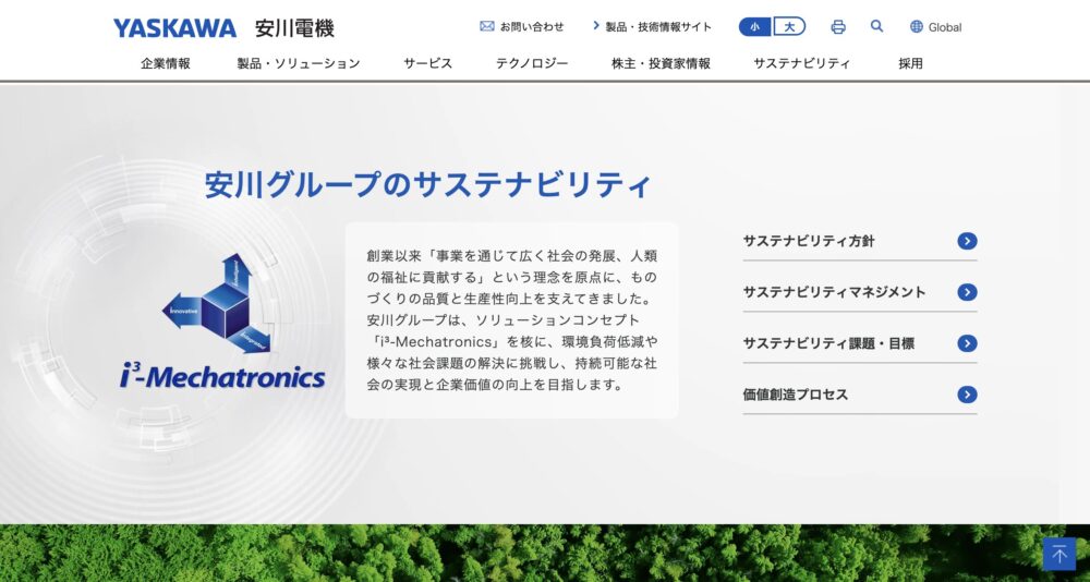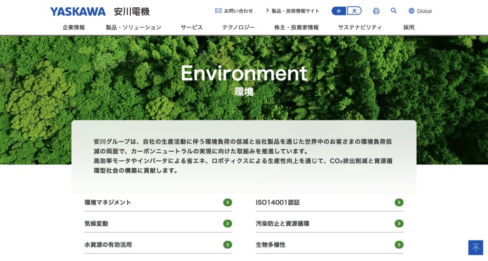 安川電機様「サステナビリティ」ページのWebデザイン